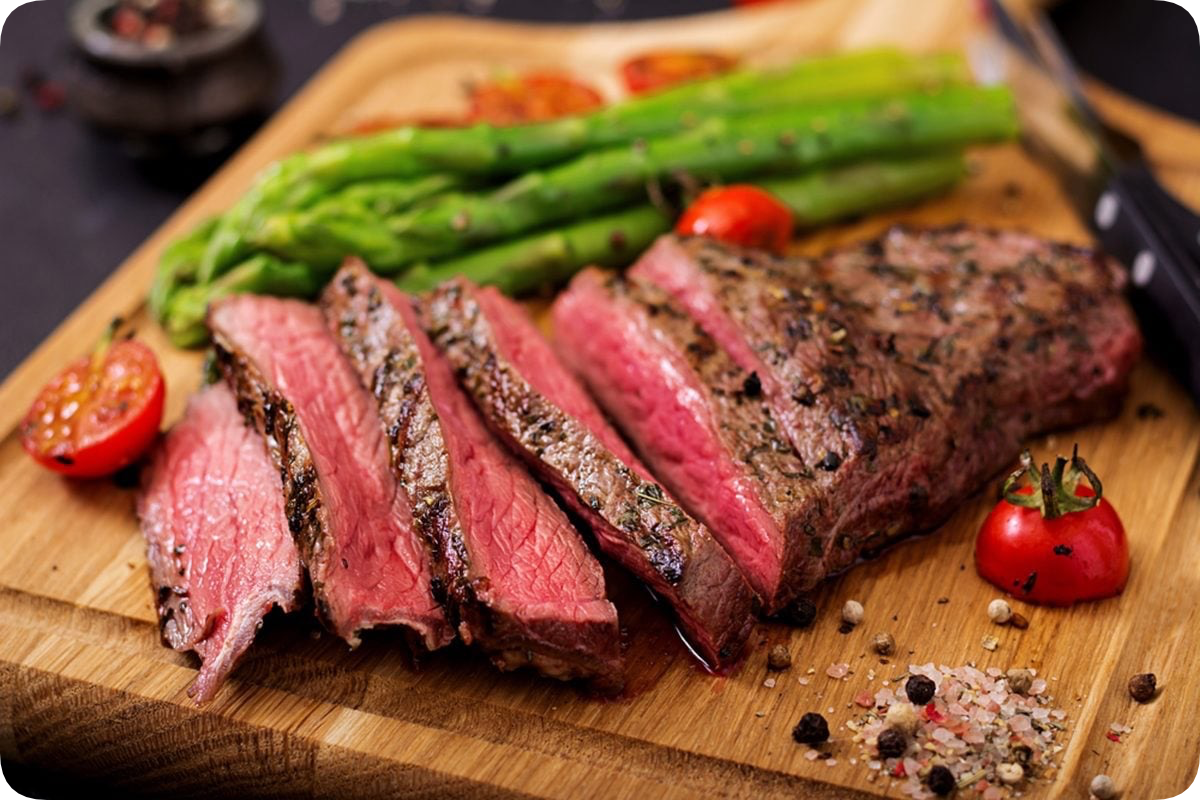 - Servírování: Steak nakrájejte na plátky silné minimálně půl centimetru a podávejte